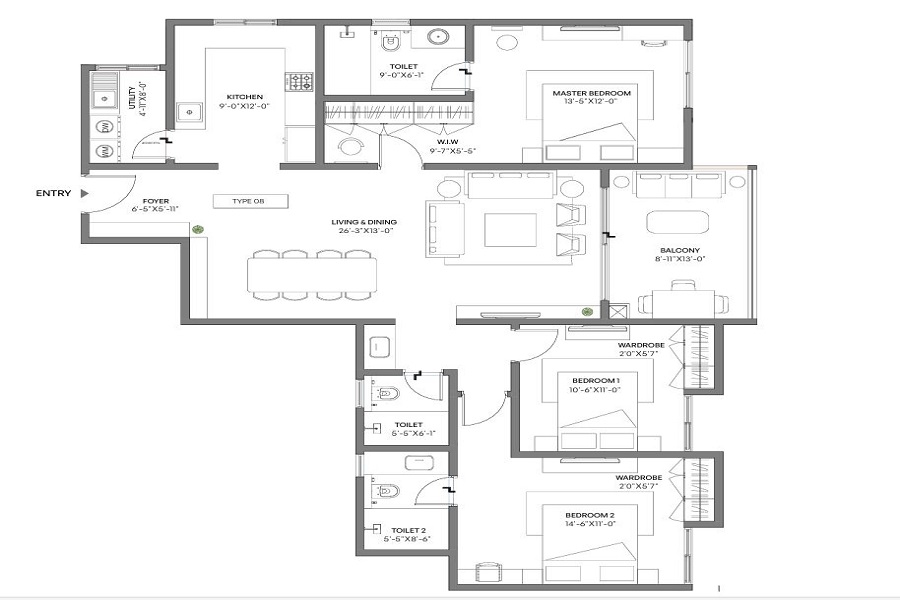 The project consists of 2 majestic towers, each rising 2B + G + 30 floors, offering a total of 520 exclusive residences. With spacious 3 BHK homes ranging from 1891 to 2111 sq. ft., every apartment is crafted to maximize space efficiency, natural light, and ventilation while ensuring superior privacy.